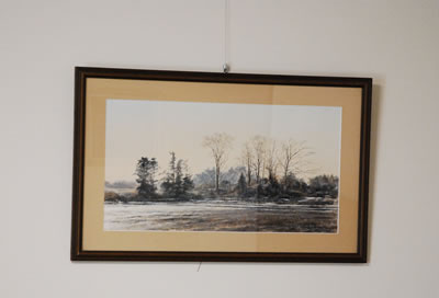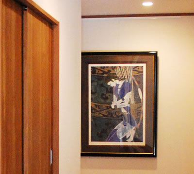 〇コレクションの絵画や版画を効果的に絵画や版画のコレクションを効果的にかけられるよう、壁の色彩を押さえました。 そして、季節や気分によって簡単に、安全に掛け替えられるよう、ピクチャーレールを随所に設置しました。 |