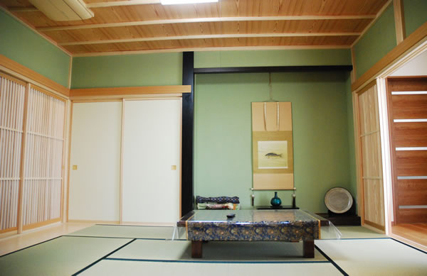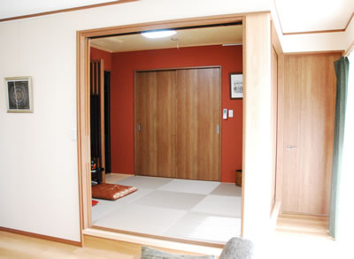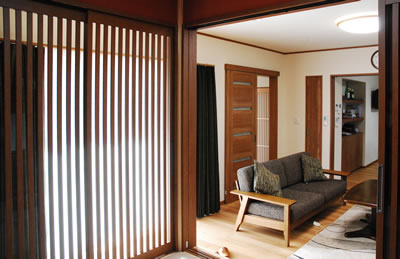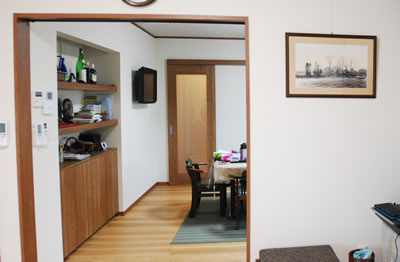 お客様は生活の場を通ることなく、たたきから小縁にあがり、たたきに続く和室に通されます。 これまでは接客スペースまで廊下を通ることによって、私生活の様子をうかがわれることを気にしながら、接客していました。 |